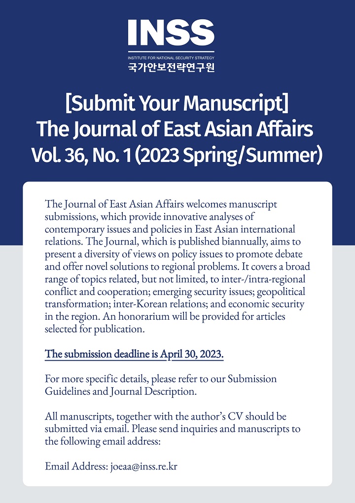 NextCall for papers: The Journal of East Asian Affairs(JOEAA), Vol. 36, No.2. 2023-10-26