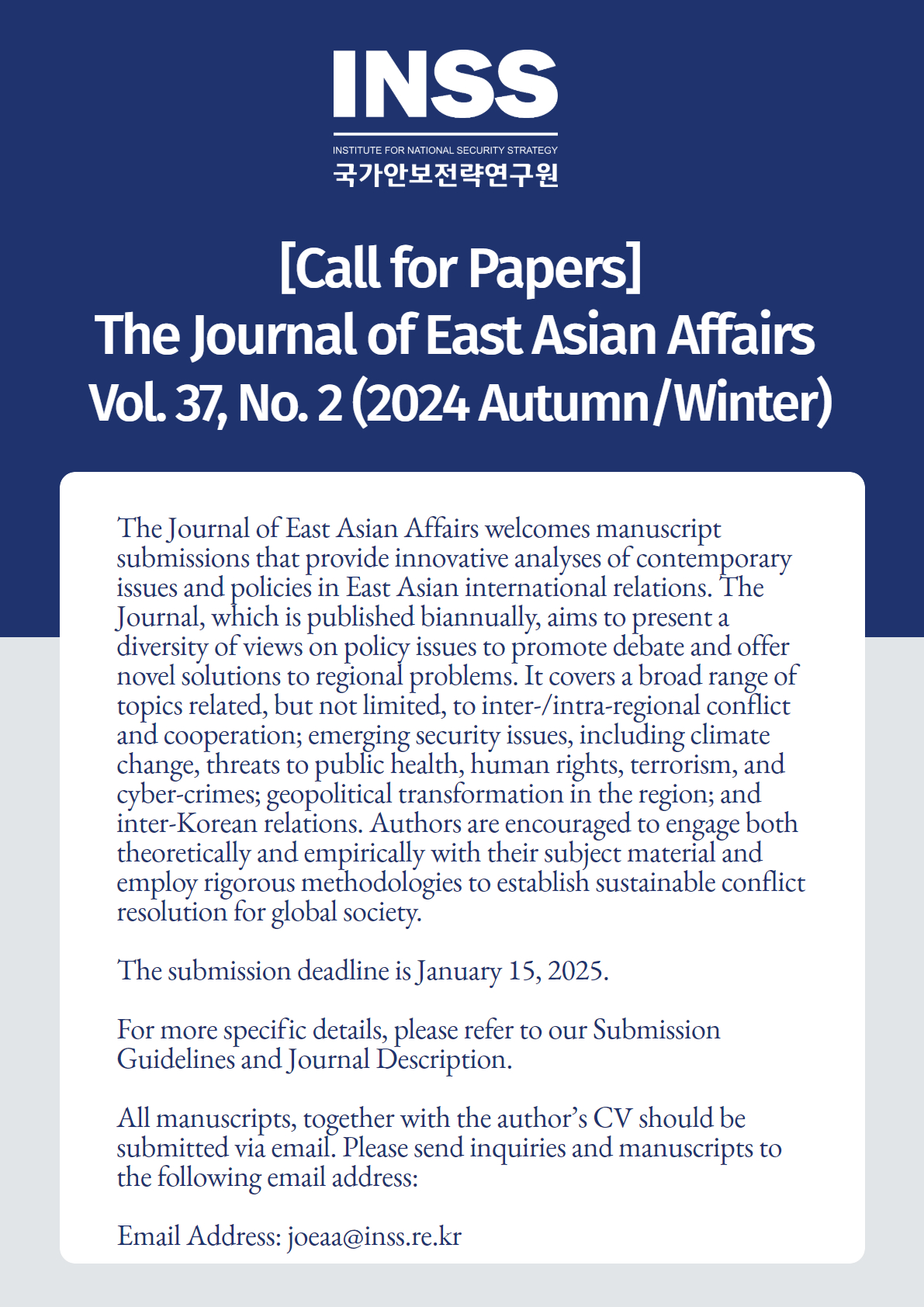 Call for papers: The Journal of East Asian Affairs(JOEAA), Vol. 37, No.2.